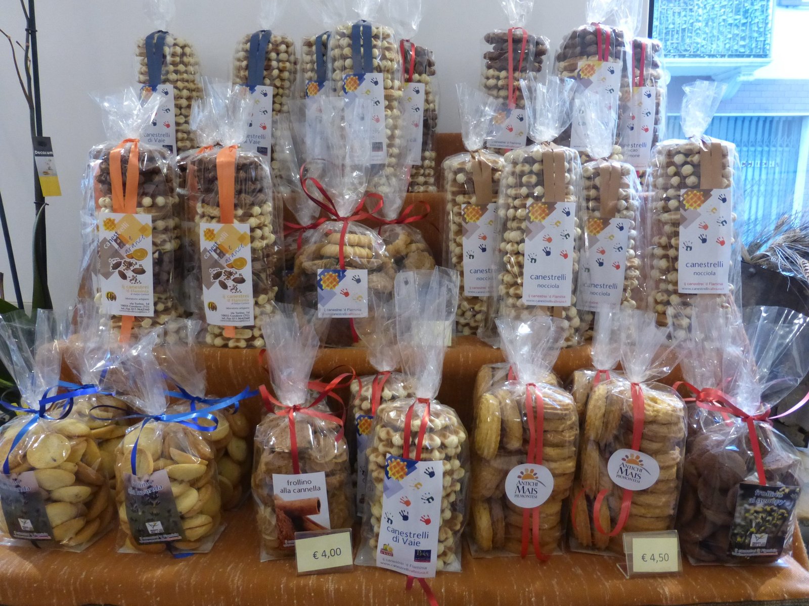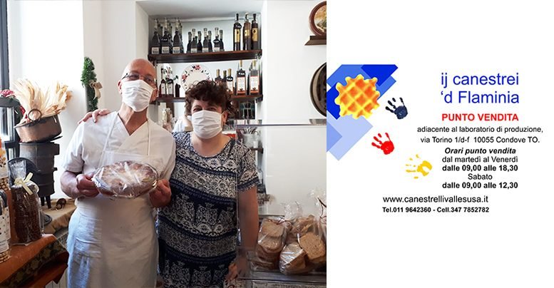 La grande esperienza di Katya e Paolo, unita alla continua ricerca delle migliori ricette nella tradizione locale, ha fatto sì che il loro laboratorio artigianale “Ij Canestrei ‘d Flaminia” sia una realtà molto apprezzata in Valsusa. Ogni giorno infatti sfornano nuove bontà dolci e salate: canestrelli, paste di meliga, torte, crostate e tantissimi altri biscotti. Ora anche le focacce dolci. In più negli anni hanno saputo intrecciare rapporti con piccole aziende valsusine che producono a km 0. Vini locali di antichi vitigni, miele di montagna, marmellate da agricoltura biologica, liquori, tisane, marroni, cioccolato, zabaione, idromele, creme alla nocciola, genepy, liquori, farine di antichi mais e molto altro. Tutti i prodotti sono della Valsusa e del Piemonte. Delizie che si aggiungono ai famosi canestrelli, agli altri biscotti e alle crostate del biscottificio di Condove. Un laboratorio di produzione, dove entrando si viene avvolti da profumi e fragranze travolgenti.
