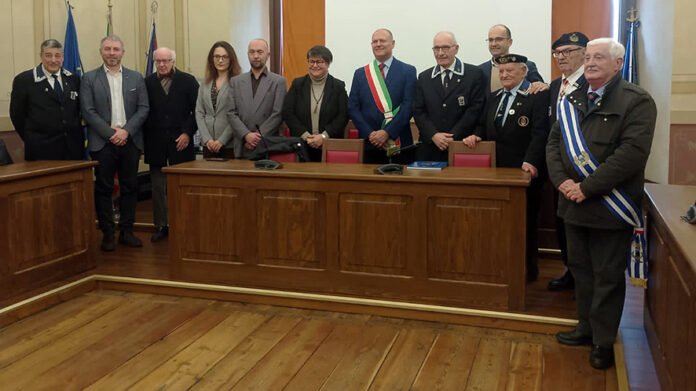 SUSA – Sabato scorso l’Ammiraglio di Squadra Pierluigi Rosati, Presidente dell’Associazione Nazionale Marinai d’Italia, ha fatto visita alla Città di Susa ed è stato accolto in sala consiliare dal Sindaco Pier Giuseppe Genovese e dall’Assessore Giuliano Pelissero, alla presenza del Presidente dell’Associazione Nazionale Marinai d’Italia sezione Valsusa Antonino Laganà, del Presidente Onorario Rocco Ritorto e del Presidente Emerito Cesare Olivero Pistoletto. Inoltre hanno presenziato insieme ai sindaci Jacopo Suppo di Condove, Marina Pittau di Mattie, Davide Gastaldo con la Vicesindaco Maria Laura Pesando di Mompantero, il Presidente della Società di Ricerche e Studi valsusini Germano Bellicardi, già Sindaco di Susa e il Vicepresidente Associazione Nazionale Combattenti e Reduci della Sezione di Condove e Borgone Angelo Di Bonito.