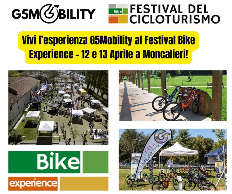 AVIGLIANA – Vivi l’esperienza G5Mobility al Festival Bike Experience il 12 e 13 aprile a Moncalieri! Dall’azienda di Avigliana: “Ci fa piacere invitarti a un evento speciale dedicato a chi ama pedalare, scoprire e innovare: il Festival Bike Experience, che si terrà sabato 12 e domenica 13 aprile al Parco delle Vallere di Moncalieri. Durante queste due giornate, potrai venirci a trovare presso il nostro stand per vivere da vicino tutto il mondo G5mobility!” Ecco cosa ti aspetta: